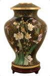 The Butterfly cloissoné urn and mahogany stand is a truly stunning piece of craftsmanship and makes a vibrant and individual presentation. The urn is hand-cast in solid brass with each individual enamelled cloisonné attached by hand.