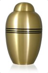 The Purity Urn is hand-cast in brass with a natural pure colouring and intricate gold bands. This urn measures 28cm tall by 15cm wide and will hold the full ashes of an adult.