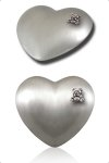 An elegant heart-shaped pewter keepsake urn, hand-made in the UK. The urn features a solid pewter teddy bear on the front.